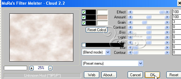 Premere successivamente il tasto Reset serve per cambiare casualmente (ragione per la quale il tuo risultato non potrà essere uguale al mio esempio, l'aspetto delle nuvole.