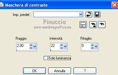 Regola>Messa a fuoco>Maschera di contrasto, con i settaggi precedenti.