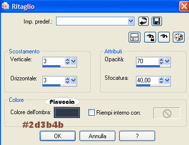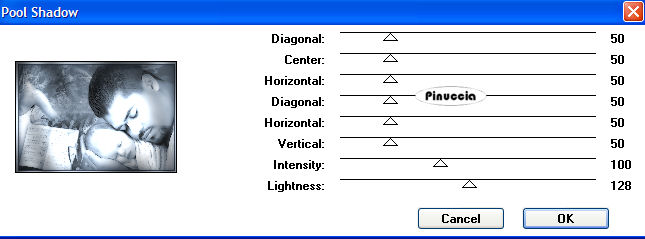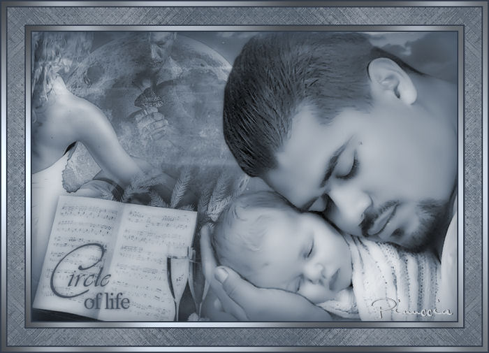 qui puoi trovare qualche risposta ai tuoi dubbi. Se l'argomento che ti interessa non è presente, ti prego di segnalarmelo. Questo tutorial è stato scritto in PSP 9, ma può essere eseguito con qualsiasi versione del programma. Per tradurlo, l'ho eseguito con PSP X. Occorrente: Materiale qui Se vuoi condividere i tubes, per favore rispetta il lavoro degli autori, e lascia intatto il livello del watermark. Filtri: Xero qui Greg's Factory Output Vol.2 qui Funhouse qui Simple qui Apri una nuova immagine trasparente 625 x 425 pixels. Imposta il colore di primo piano con #63738c. Riempi l'immagine con questo colore.Apri il tube Kara T1301 e vai a Modifica>Copia. Torna al tuo lavoro e vai a Modifica>Incolla>Incolla come nuovo livello. Attiva lo strumento Deformazione ![]() se stai usando PSP X è lo strumento Puntatore ![]() "tira" l'immagine per tutta la larghezza della tela. Sposta il tube in alto, come mostrato nella schermata:![]() Apri il tube SS_232 e vai a Modifica>Copia. Torna al tuo lavoro e vai a Modifica>Incolla>Incolla come nuovo livello. Immagine>Rifletti. Immagine>Ridimensiona, al 90%, tutti i livelli non selezionato: ![]() Sposta il tube in alto a sinistra.Abbassa l'opacità di questo livello al 70%. ![]() Apri il tube mc381 e vai a Modifica>Copia. Torna al tuo lavoro e vai a Modifica>Incolla>Incolla come nuovo livello. Immagine>Ridimensiona, per due volte al 70%, tutti i livelli non selezionato. Sposta in alto contro il bordo, al centro della luna.Abbassa l'opacità di questo livello al 58%. Attiva lo strumento Gomma (dimensione 20, durezza 5, opacità 10), e cancella le parti del tube che coprono le braccia e le spalle della donna. ![]() Apri il tube Kara T578 e vai a Modifica>Copia. Torna al tuo lavoro e vai a Modifica>Incolla>Incolla come nuovo livello. Spostalo nell'angolo in basso a sinistra.Cambia la modalità di miscelatura di questo livello in Luminanza. Apri il tube mc2435 e vai a Modifica>Copia. Torna al tuo lavoro e vai a Modifica>Incolla>Incolla come nuovo livello. Spostalo a destra, un po' in basso.![]() Regola>Correzione fotografica>Rimozione disturbo fotocamera digitale. Se stai usando PSP X: Regola>Rimozione disturbo fotocamera digitale Livelli>Unisci>Unisci tutto. Regola>Saturazione e Tonalità>Viraggio: ![]() Effetti>Plugins>Xero - Porcelain: ![]() Selezione>Seleziona tutto. Effetti>Effetti 3D>Ritaglio: ![]() Selezione>Nessuna selezione. Modifica>Copia (per sicurezza, fai anche una copia dell'immagine con shift+D, nel caso dovessi perderla dalla memoria). Immagine>Aggiungi bordatura, 2 pixels, simmetriche, con il colore #343d4b. Immagine>Aggiungi bordatura, 7 pixels, simmetriche, con il colore #a4adb7. Seleziona il bordo con la bacchetta magica ![]() (tolleranza 0, antialias, interno). Effetti>Plugins>Greg's Factory Output 2 - Pool Shadow: ![]() Selezione>Nessuna selezione. Immagine>Aggiungi bordatura, 2 pixels, simmetriche, con il colore #343d4b. Immagine>Aggiungi bordatura, 25 pixels, simmetriche, con il colore bianco. Seleziona il bordo con la bacchetta magica. Modifica>Incolla>Incolla nella selezione. (hai incollato l'immagine copiata prima di aggiungere i bordi). Regola>Sfocatura>Sfocatura gaussiana, raggio 50. ![]() Effetti>Plugins>Funhouse - Xaggerate. Effetti>Plugins>Simple - 4 Way Average. Selezione>Nessuna selezione. Immagine>Aggiungi bordatura, 2 pixels, simmetriche, con il colore #343d4b. Immagine>Aggiungi bordatura, 7 pixels, simmetriche, con il colore #a4adb7. Seleziona il bordo con la bacchetta magica ![]() (tolleranza 0, antialias, interno). Effetti>Plugins>Greg's Factory Output 2 - Pool Shadow: ![]() Selezione>Nessuna selezione. Immagine>Aggiungi bordatura, 2 pixels, simmetriche, con il colore #343d4b. Apri il testo Circle of life e vai a Modifica>Copia. Torna al tuo lavoro e vai a Modifica>Incolla>Incolla come nuovo livello. Posiziona il testo come preferisci.Aggiungi il tuo nome o il tuo watermark in un nuovo livello. Livelli>Unisci>Unisci tutto. Salva in formato jpg. ![]() Se hai problemi o dubbi, o trovi un link non funzionante, o anche soltanto per dirmi che ti è piaciuto, scrivimi 14 Marzo 2007 |