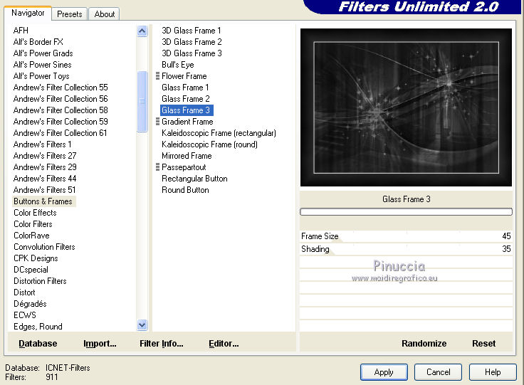 ricorda che questo filtro lavora con i lavori impostati nella paletta dei materiali, ma tiene in memoria il primo settaggio dall'apertura del programma.