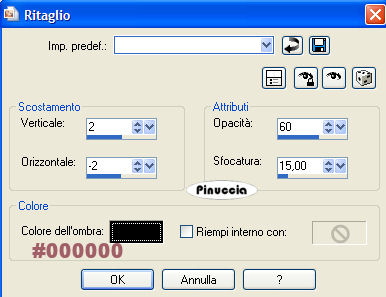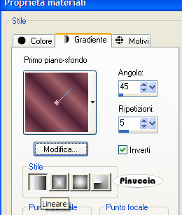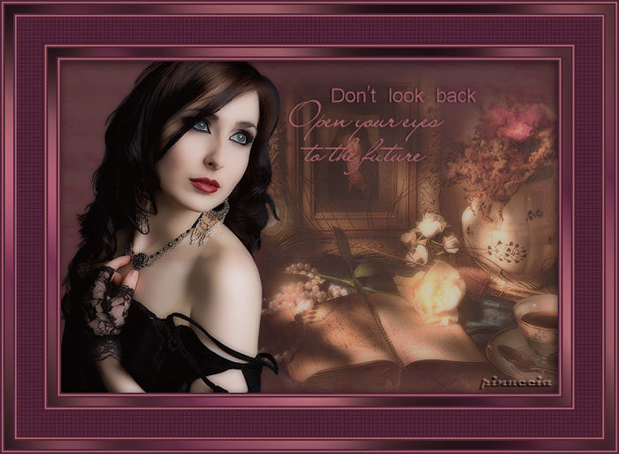 ![]() Apri il tube Gorgeous_blue_eyes e vai a Modifica>Copia. Torna al tuo lavoro e vai a Modifica>Incolla come nuovo livello. Immagine>Ridimensiona, al 70%, ricampionamento bicubica, tutti i livelli non selezionato. ![]() Sposta il tube a sinistra, un po' più in basso.Abbassa l'opacità di questo livello al 90%. ![]() Livelli>Unisci>Unisci tutto. Effetti>Plugins>Xero - Porcelain: ![]() Selezione>Seleziona tutto. Effetti>Effetti 3D>Ritaglio: ![]() Selezione>Seleziona tutto. Imposta il colore di primo piano con #502236. Immagine>Aggiungi bordatura, 2 pixels, simmetriche, con il colore #502236. Immagine>Aggiungi bordatura, 2 pixels, simmetriche, con il colore #a15f68. Immagine>Aggiungi bordatura, 2 pixels, simmetriche, con il colore #502236. Passa il colore di primo piano a Gradiente di primo piano/sfondo: ![]() Immagine>Aggiungi bordatura, 10 pixels, simmetriche, con il colore bianco. Seleziona il bordo con la bacchetta magica ![]() ![]() Riempi la selezione con il gradiente.Effetti>Plugins>Graphics Plus - Cross Shadow, con i settaggi standard. ![]() Selezione>Deseleziona. Immagine>Aggiungi bordatura, 2 pixels, simmetriche, con il colore #502236. Immagine>Aggiungi bordatura, 2 pixels, simmetriche, con il colore #a15f68. Immagine>Aggiungi bordatura, 2 pixels, simmetriche, con il colore #502236. Riporta il colore di primo piano a colore. Immagine>Aggiungi bordatura, 30 pixels, simmetriche, con il colore bianco. Seleziona il bordo con la bacchetta magica ![]() e riempilo con il colore di primo piano.Effetti>Plugins>Xero - Fritillary, con i settaggi standard. ![]() Selezione>Deseleziona. Immagine>Aggiungi bordatura, 2 pixels, simmetriche, con il colore #502236. Immagine>Aggiungi bordatura, 2 pixels, simmetriche, con il colore #a15f68. Immagine>Aggiungi bordatura, 2 pixels, simmetriche, con il colore #502236. Riporta il colore di primo piano a Gradiente. Immagine>Aggiungi bordatura, 10 pixels, simmetriche, con il colore bianco. Seleziona il bordo con la bacchetta magica ,e riempilo con il gradiente.Effetti>Plugins>Graphics Plus - Cross Shadow, con i settaggi standard. ![]() Selezione>Deseleziona. Immagine>Aggiungi bordatura, 2 pixels, simmetriche, con il colore #502236. Immagine>Aggiungi bordatura, 2 pixels, simmetriche, con il colore #a15f68. Immagine>Aggiungi bordatura, 2 pixels, simmetriche, con il colore #502236. Apri il file con il testo Don't look back e vai a Modifica>Copia. Torna al tuo lavoro e vai a Modifica>Incolla come nuovo livello. Posizionalo dove preferisci.Aggiungi il tuo nome o il tuo watermark in un nuovo livello. Livelli>Unisci>Unisci tutto. Salva in formato jpg o jpeg ottimizzata. ![]() Se hai problemi o dubbi, o trovi un link non funzionante, o anche soltanto per dirmi che ti è piaciuto, scrivimi