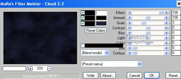 Premere successivamente il tasto Reset serve per cambiare casualmente (ragione per la quale il tuo risultato non potrà essere uguale al mio esempio, l'aspetto delle nuvole.