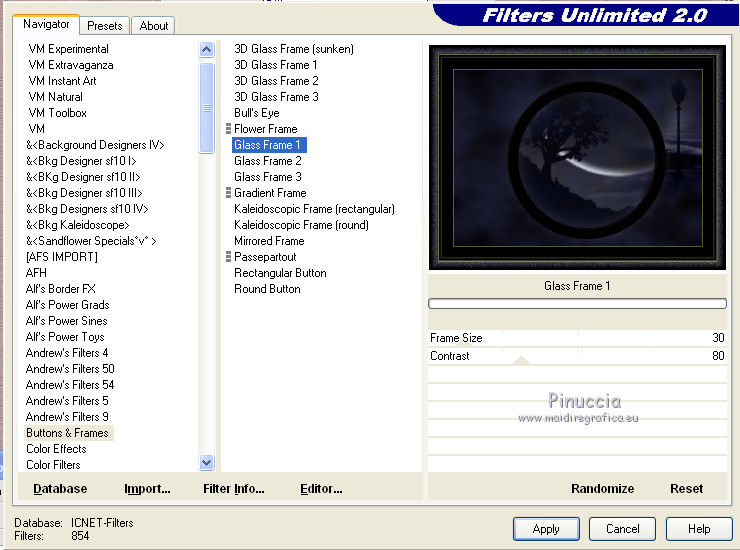 Effetti>Plugins>Filters Unlimited 2.0 - Buttons and frame - Glass Frame 1.