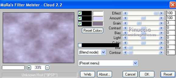 Premere successivamente il tasto Reset serve per cambiare casualmente (ragione per la quale il tuo risultato non potrà essere uguale al mio esempio, l'aspetto delle nuvole.