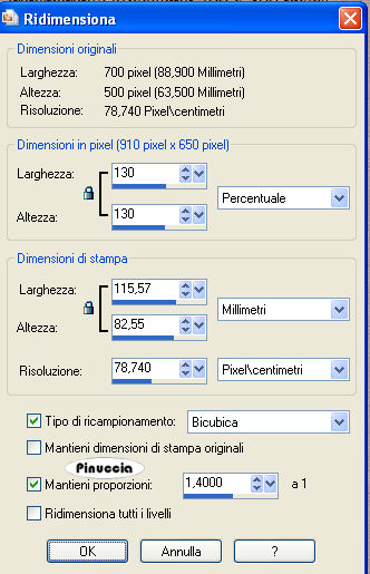 Immagine>Ridimensiona, al 130%, tutti i livelli non selezionato.