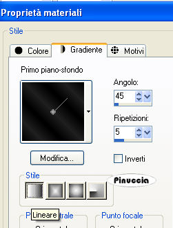 Passa il colore di primo piano a Gradiente, con i seguenti settaggi: