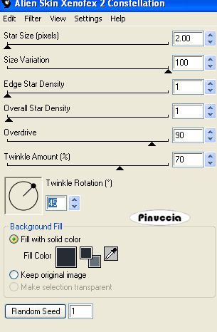 qui puoi trovare qualche risposta ai tuoi dubbi. Se l'argomento che ti interessa non è presente, ti prego di segnalarmelo. Questo tutorial è stato scritto in PSP 9, ma può essere eseguito con qualsiasi versione del programma. Occorrente: Materiale qui I tubes usati per questo tutorial sono di Ann, Angie, MarieL, Monique Se vuoi condividere i tubes, per favore rispetta il lavoro degli autori, e lascia intatto il livello del watermark. (in questa pagina trovi i links ai siti dei creatori di tubes) Filtri: Filters Unlimited 2.0 qui Alien Skin Xenofex 2 qui Mura's Meister qui Apri una nuova immagine trasparente 700 x 500 pixels. Imposta il colore di primo piano con #243144, e il colore di sfondo con #677079. Riempi l'immagine trasparente con il colore di primo piano.Apri il tube Tubed_by_monique42_3379, e vai a Modifica>copia. Torna al tuo lavoro e vai a Modifica>Incolla>Incolla come nuovo livello. Immagine>Rifletti. Spostalo in alto contro il bordo.Attiva lo strumento Puntatore ![]() e allarga il tube per tutta la larghezza della tela lasciando uno spazio di circa 150 pixels dal basso. Cambia la modalità di miscelatura di questo livello in Luminanza (esistente). ![]() Apri il tube MarieL_2008_04Avril_And03t, e vai a Modifica>copia. Torna al tuo lavoro e vai a Modifica>Incolla>Incolla come nuovo livello. Spostalo in basso a sinistra.(vedi il mio esempio). Cambia la modalità di miscelatura di questo livello in Luminanza (esistente), e abbassa l'opacità al 38%. ![]() Apri il tube DIV-S2007-04, e vai a Modifica>copia. Torna al tuo lavoro e vai a Modifica>Incolla>Incolla come nuovo livello. Spostalo in alto e un po' più a destra.Cambia la modalità di miscelatura di questo livello in Luminanza (esistente), e abbassa l'opacità al 30%. Apri il tube CPL-J2008-10., e vai a Modifica>copia. Torna al tuo lavoro e vai a Modifica>Incolla>Incolla come nuovo livello. Immagine>Ridimensiona, al , tutti i livelli non selezionato. Spostalo in alto a destra.Cambia la modalità di miscelatura di questo livello in Luminanza (esistente), e abbassa l'opacità al 60%. ![]() Apri il tube @nn_290408_womansleeping, e vai a Modifica>copia. Torna al tuo lavoro e vai a Modifica>Incolla>Incolla come nuovo livello. Spostalo in basso, con il braccio sul bordo e un po' più a destra.![]() Regola>Correzione fotografica>Rimozione disturbo fotocamera digitale. Regola>Messa a fuoco>Metti a fuoco. Cambia la modalità di miscelatura di questo livello in Luminanza (esistente). Livelli>Unisci>Unisci tutto. Effetti>Plugins>Filters Unlimited 2.0 - Color Filters - Desaturate: ![]() Imposta il colore di primo piano con #252c33. Immagine>Aggiungi bordatura, 1 pixel, simmetriche, con il colore #677079. Immagine>Aggiungi bordatura, 8 pixels, simmetriche, con il colore bianco. Seleziona questo bordo con la bacchetta magica ![]() ![]() Riempi con il colore di primo piano.Selezione>Nessuna selezione. Immagine>Aggiungi bordatura, 1 pixel, simmetriche, con il colore #677079. Immagine>Aggiungi bordatura, 25 pixels, simmetriche, con il colore bianco. Seleziona questo bordo con la bacchetta magica ![]() Effetti>Plugins>Mura's Meister - Cloud, con i settaggi standard. Selezione>Nessuna selezione. Immagine>Aggiungi bordatura, 1 pixel, simmetriche, con il colore #677079. Apri il file con il testo Long and lonely nights, e vai a Modifica>Copia. Torna al tuo lavoro e vai a Modifica>Incolla>Incolla come nuovo livello. Posiziona il testo come preferisci.Aggiungi il tuo nome e/o il tuo watermark su un nuovo livello. Livelli>Unisci>Unisci tutto. Se non vuoi creare l'animazione salva in formato jpg. ![]() se vuoi creare l'animazione... continua così: Seleziona con la bacchetta magica il bordo da 8 pixels.![]() Effetti>Plugins>Alien Skin - Xenofex 2: ![]() Selezione>Nessuna selezione. Modifica>Copia. Apri Animation Shop e vai a Modifica>Incolla>Incolla come nuova animazione. *** Torna in PSP Modifica>Annulla azione Nessuna selezione. Modifica>Annulla azione Constellation. Effetti>Plugins>Alien Skin Xenofex 2, con i settaggi precedenti, ma clicca una volta su Random Seed. Selezione>Nessuna selezione. Modifica>Copia. Torna in Animation Shop e vai a Modifica>Incolla>Incolla dopo il fotogramma corrente. *** Torna in PSP. Ripeti il passo precedente da *** a *** Alla fine avrai la tua animazione formata da 3 fotogrammi. Modifica>Seleziona tutto. Animazione>Proprietà fotogramma, e imposta la velocità a 22. ![]() Salva in formato gif. ![]() Se hai problemi o dubbi, o trovi un link non funzionante, o anche soltanto per dirmi che ti è piaciuto, scrivimi
