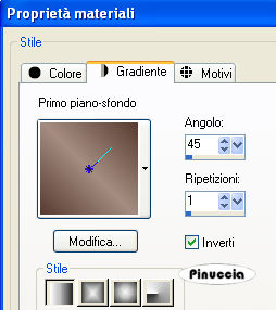 Passa il colore di primo piano a Gradiente di primo piano/sfondo, con i seguenti settaggi: