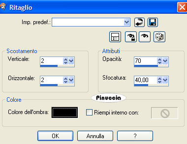 e riempilo con il gradiente.Effetti>Plugins>Cybia - Screenworks - Light Gauze. Selezione>Nessuna selezione. Immagine>Aggiungi bordatura, 1 pixel, simmetriche, con il colore nero. Immagine>Aggiungi bordatura, 15 pixels, simmetriche, con il colore bianco. Seleziona il bordo con la bacchetta magica ![]() Riempi il bordo con il gradiente.Effetti>Plugins>Graphics Plus - Cross Shadow. ![]() Selezione>Nessuna selezione. Attiva il file con il testo Love is no... e vai a Modifica>copia. Torna al tuo lavoro e vai a Modifica>Incolla>Incolla come nuovo livello e posizionalo. Eventualmente, aggiunti il tuo nome in un nuovo livello. Livelli>Unisci>Unisci tutto. Salva come jpeg ottimizzata. Se vuoi, puoi usare lo strumento Testo , per sostituire il testo con la traduzione in italiano,o con un altro tuo testo a scelta. Se vuoi usare il mio, clicca qui ![]() ![]() Se hai problemi o dubbi, o trovi un link non funzionante, o anche soltanto per dirmi che ti è piaciuto, scrivimi ![]() Le mie traduzioni sono regolarmente registrate. 17 Aprile 2007 |