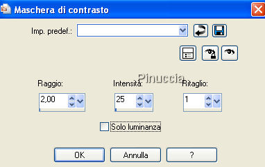 Regola>Messa a fuoco>Maschera di contrasto, con i settaggi precedenti.