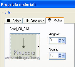 Passa il colore di primo piano a Motivi e seleziona un motivo a tua scelta con i seguenti settaggi.