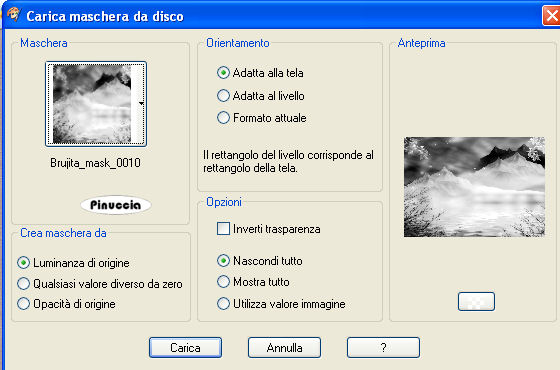 qui puoi trovare qualche risposta ai tuoi dubbi. Se l'argomento che ti interessa non è presente, ti prego di segnalarmelo. Questo tutorial è stato scritto con PSP 9. Per tradurlo, ho usato PSP X. Occorrente: Materiale qui I tubes usati per questo tutorial sono di Jet, Silke, Marcio e Dieter e Marion. La maschera è di Brujita Se vuoi condividere i tubes, per favore rispetta il lavoro degli autori, e lascia intatto il livello del watermark. Filtri: Filters Unlimited 2.0 qui Xero qui Funhouse qui Apri una nuova immagine trasparente 700 x 500 pixels. Imposta il colore di primo piano con #a2adc0, e il colore di sfondo con il bianco (#ffffff). Riempi l’immagine trasparente con il colore di primo piano.Livelli>Nuovo livello raster. Riempi il nuovo livello con il colore di sfondo.Livelli>Carica/Salva maschera>Carica maschera da disco. Cerca e carica la maschera : ![]() Livelli>Unisci>Unisci gruppo. Regola>Messa a fuoco>Metti a fuoco. Apri il tube Marif_2007_misted_paysage075, e vai a Modifica>copia. Torna al tuo lavoro e vai a Modifica>Incolla come nuovo livello. Immagine>Rifletti. Sposta il tube in basso a destra (vedi il mio esempio).Cambia la modalità di miscelatura di questo livello in Luminanza (esistente). Apri il tube SKF_Landscape108 e vai a Modifica>copia. Torna al tuo lavoro e vai a Modifica>Incolla come nuovo livello. Immagine>Rifletti. Sposta il tube in basso a destra.Cambia la modalità di miscelatura di questo livello in Luminanza (esistente). Livelli>Duplica. Livelli>Unisci>Unisci giù. ![]() Attiva il livello sottostante (il paesaggio di Marif). Attiva lo strumento Gomma ![]() cancella la parte scura nell’esempio: ![]() Attiva il livello superiore. Apri il tube mc1254 e vai a Modifica>copia. Torna al tuo lavoro e vai a Modifica>Incolla come nuovo livello. Immagine>Ridimensiona, 2 volte al 60%, tutti i livelli non selezionato. ![]() Sposta il tube in alto a sinistra.Attiva lo strumento Gomma ![]() e cancella la parte di tube intorno agli uccelli. ![]() Puoi anche selezionare la parte da cancellare con lo strumento Selezione a mano libera e poi premere sulla tastiera il tasto CANC.Cambia la modalità di miscelatura di questo livello in Luminanza (esistente), e abbassa l’opacità all’80%. Apri il tube MDS133 e vai a Modifica>copia. Torna al tuo lavoro e vai a Modifica>Incolla come nuovo livello. Immagine>Ridimensiona, al 60%, tutti i livelli non selezionato. Immagine>Capovolgi. Immagine>Rifletti. Cambia la modalità di miscelatura di questo livello in Luminanza (esistente). Livelli>Duplica. Posiziona i due livelli in basso a destra, come nell’esempio.![]() ![]() Apri il tube jet-woman9-jan.2008 e vai a Modifica>copia. Torna al tuo lavoro e vai a Modifica>Incolla come nuovo livello. Immagine>Ridimensiona, al 90%, tutti i livelli non selezionato. Sposta il tube un po’ più in basso, a sinistra.