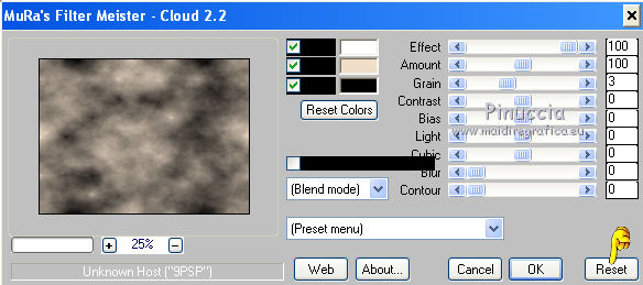 Premere successivamente il tasto Reset serve per cambiare casualmente (ragione per la quale il tuo risultato non potrà essere uguale al mio esempio, l'aspetto delle nuvole.