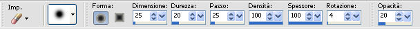 Attiva lo strumento Gomma con i seguenti settaggi:
