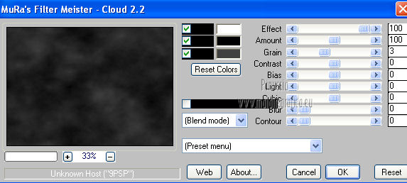 Premere successivamente il tasto Reset serve per cambiare casualmente (ragione per la quale il tuo risultato non potrà essere uguale al mio esempio, l'aspetto delle nuvole.