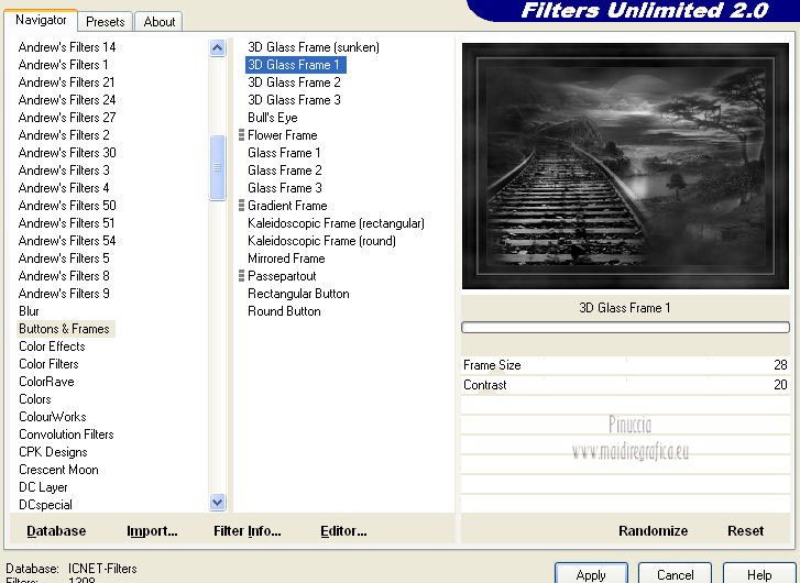 Effetti>Plugins>Filters Unlimited 2.0 - Buttons & Frames - 3D Glass Frame 1.