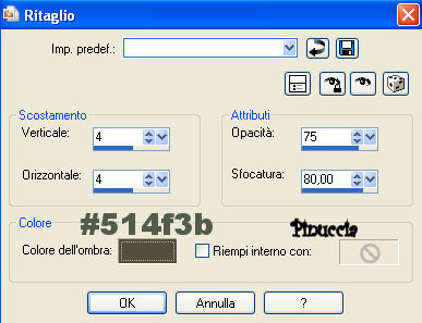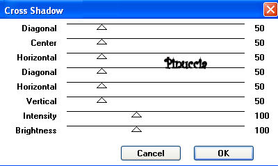 Effetti>Plugins>Graphics Plus - Cross Shadow, con i seguenti settaggi.