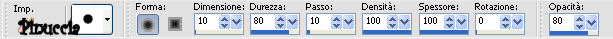 Attiva lo strumento Gomma , con i seguenti settaggi: