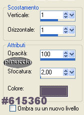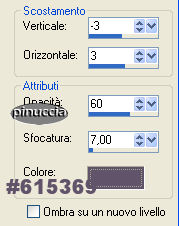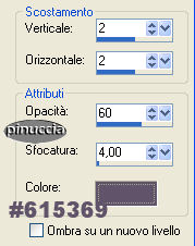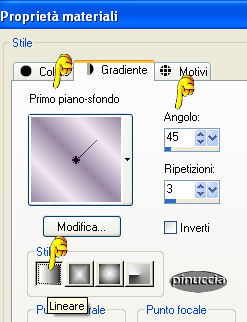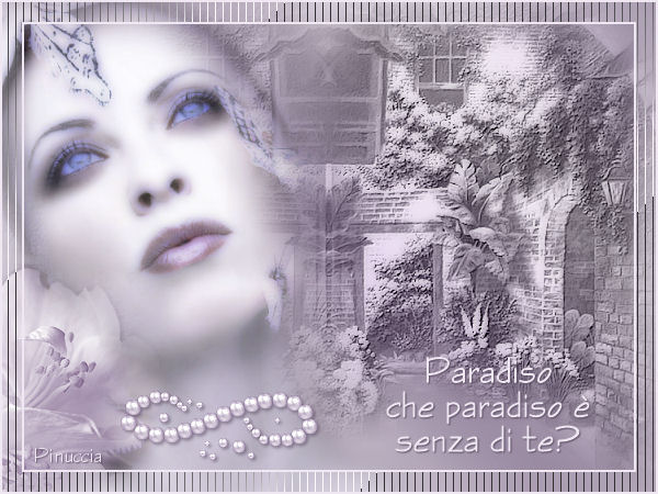 qui puoi trovare qualche risposta ai tuoi dubbi. Se l'argomento che ti interessa non è presente, ti prego di segnalarmelo. Questo tutorial è stato scritto con PSP 9, ma può essere eseguito anche con le altre versioni di PSP. Occorrente: Materiale qui Per favore, se vuoi condividere i tubes, mantieni intatto il livello del nome Filtri: FM Tile Tools qui Xero Porcelain qui Tramage qui Apri una nuova immagine trasparente 600 x 400 pixels. Imposta il colore di primo piano con #9787a1, e il colore di sfondo con #efe8f2. Passa il colore di primo piano a gradiente di primo piano/sfondo, lineare, con i seguenti settaggi: ![]() Riempi l'immagine con questo gradiente.Regola>Sfocatura>Sfocatura gaussiana, raggio 30. ![]() 2. Apri il tube le_Patio e vai a Modifica>Copia. Torna al tuo lavoro e vai a Modifica>Incolla>Incolla come nuovo livello. Spostalo sul lato destro.![]() Nella paletta dei livelli cambia la modalità di miscelatura in Luminanza (Esistente) e abbassa l'opacità all'84%. Livelli>Duplica. Immagine>Rifletti. Cambia la modalità di miscelatura di questo livello in Luminanza (esistente), - essendo duplicato, dovrebbe essere già in Luminanza (esistente) - e abbassa l'opacità al 40%. Livelli>Unisci>Unisci tutto. Effetti>Plugins>FM Tile tools: Blend Emboss, con i seguenti settaggi: ![]() Effetti>Plugins>Xero / Porcelain, con i seguenti settaggi: ![]() 3. Apri il tube Jasmin e vai a Modifica>Copia. Torna al tuo lavoro e vai a Modifica>Incolla>Incolla come nuovo livello. Immagine>Ruota>Ruota per gradi, 90 a sinistra, tutti i livelli non selezionato. ![]() Regola>Tonalità e Saturazione>Viraggio: ![]() Effetti>Effetti 3D>Sfalsa ombra, con i seguenti settaggi, colore #615369. ![]() Spostalo nell'angolo in basso a sinistra.4. Apri il tube Amestista_ladybutterfly. Immagine>Ridimensiona, 90%, tutti i livelli selezionato. Modifica>Copia. Torna al tuo lavoro e vai a Modifica>Incolla>Incolla come nuovo livello. Effetti>Effetti 3D>Sfalsa ombra, con i settaggi precedenti. Sposta il tube nell'angolo in alto a sinistra.5. Apri il tube Perle. Regola>Tonalità e saturazione>Viraggio con i settaggi precedenti (200-40). Modifica>Copia. Torna al tuo lavoro e vai a Modifica>Incolla>Incolla come nuovo livello. Regola>Messa a fuoco>Metti a fuoco. Effetti>Effetti 3D>sfalsa ombra, con i seguenti settaggi, colore #615369. ![]() Posizionalo sotto il collo.Livelli>Unisci>Unisci tutto. 6. Selezione>Seleziona tutto. Selezione>Modifica>Contrai, di 20 pixels. Selezione>Inverti. Selezione>Innalza selezione a livello. Effetti>Plugins>Tramage - Tow the line, settaggi standard: ![]() Selezione>Inverti. Livelli>Nuovo livello raster. Riempi la selezione con #efe8f2.Selezione>Modifica>Contrai, di 2 pixels. Premi sulla tastiera il tasto CANC. Selezione>Nessuna selezione. Livelli>Nuovo livello raster. Selezione>Seleziona tutto. Selezione>Modifica>Contrai, di 20 pixels. Selezione>Inverti. Riempi con #efe8f2.Abbassa l'opacità di questo livello al 20%. Selezione>Nessuna selezione. Livelli>Nuovo livello raster. Selezione>Seleziona tutto. Selezione>Modifica>Contrai, di 2 pixels. Selezione>Inverti. Riempi con #efe8f2.Selezione>Nessuna selezione. Livelli>Nuovo livello raster. Attiva lo strumento Testo ![]() Chiudi il livello di primo piano. Imposta il livello di sfondo con #efe8f2. Scegli un font: io ho scelto Enviro, con i seguenti settaggi: ![]() Scrivi un testo e posizionalo. Effetti>Effetti 3D>Sfalsa ombra, con i seguenti settaggi, colore #615369. ![]() Se vuoi, aggiungi il tuo watermark. Salva in formato jpg. ![]() Se hai problemi o dubbi, o trovi un link non funzionante, o anche soltanto per dirmi che ti è piaciuto, scrivimi. Ottobre 2006 |