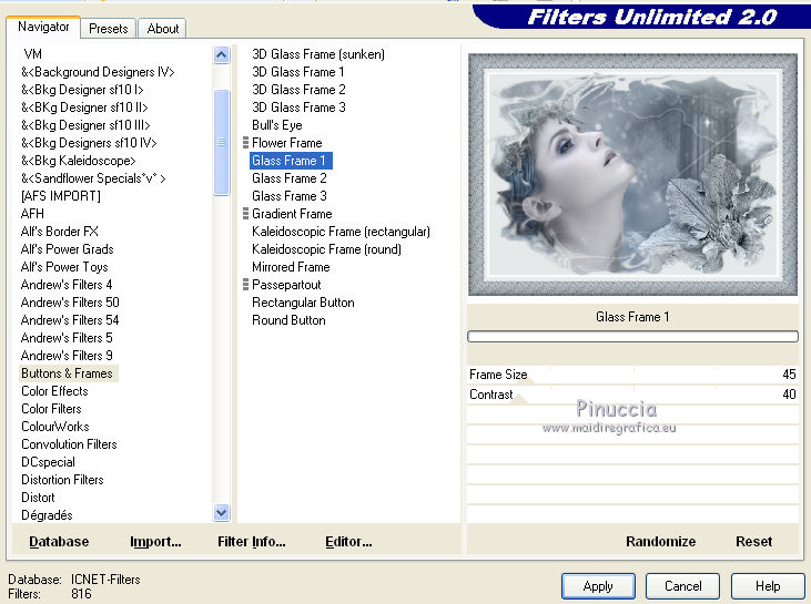Effetti>Plugins>Filters Unlimited 2.0 - Buttons&Frames - Glass Frame 1.