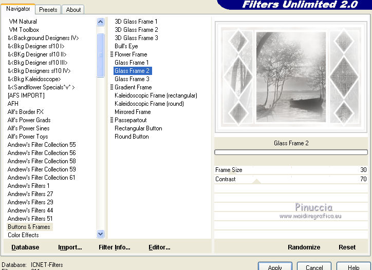 Effetti>Plugins>Filters Unlimited 2.0 - Buttons & Frames - Glass Frame 2.
