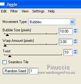 Effetti>Plugins>Eye Candy 4000 - Jiggle, clicca una volta su Random Seed e ok.