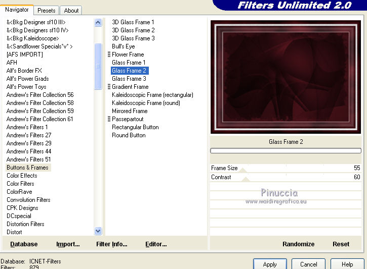Effetti>Plugins>Filters Unlimited 2.0 - Buttons & Frames - Glass Frame 2.
