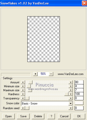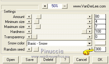 Effetti>Plugins>VanDerLee - Snowflakes, cambia Random Seed con 300 e ok.