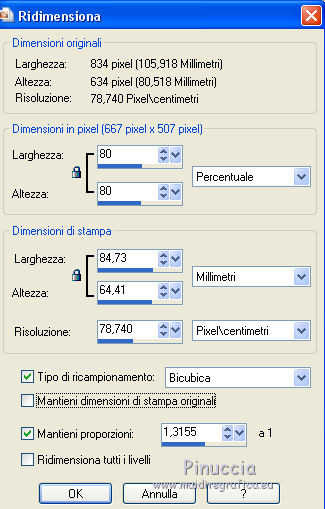 Ridimensiona, all'80%, tutti i livelli non selezionato.