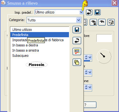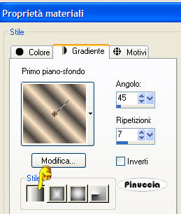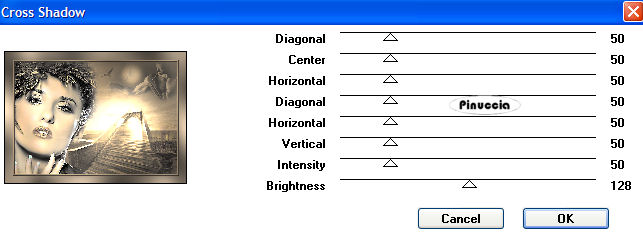 qui puoi trovare qualche risposta ai tuoi dubbi. Se l'argomento che ti interessa non è presente, ti prego di segnalarmelo. Questo tutorial è stato scritto in PSP 9, ma può essere eseguito con qualsiasi versione del programma. Per tradurlo, l'ho eseguito con PSP X. Occorrente: Materiale qui Se vuoi condividere i tubes, per favore rispetta il lavoro degli autori, e lascia intatto il livello del watermark. Filtri: Xero qui Graphics Plus qui Apri una nuova immagine trasparente 650 x 450 pixels. Imposta il colore di primo piano con #a57533, e il colore di sfondo con #48433e. Riempi la tua immagine trasparente con il colore di primo piano.Attiva il tube hjr_ship1 e vai a Modifica>Copia. Torna al tuo lavoro e vai a Modifica>Incolla>Incolla come nuovo livello. Sposta il tube in alto a sinistra.![]() Cambia la modalità di miscelatura di questo livello in Luminanza e abbassa l'opacità al 54%. ![]() Attiva il tube mc 646 e vai a Modifica>Copia. Torna al tuo lavoro e vai a Modifica>Incolla>Incolla come nuovo livello. Immagine>Rifletti. Immagine>Ridimensiona, all'80%, tutti i livelli non selezionato. ![]() Ripeti due volte. Cambia la modalità di miscelatura di questo livello in Luminanza, e abbassa l'opacità al 32%. Sposta il tube nell'angolo in alto a destra.![]() Attiva il tube hjr_misted_stairway 1 e vai a Modifica>Copia. Torna al tuo lavoro e vai a Modifica>Incolla>Incolla come nuovo livello. Sposta il tube in basso a destra.Cambia la modalità di miscelatura di questo livello in Luminanza e abbassa l'opacità all'80%. ![]() Attiva il tube HJR-Misted_NY_Statue e vai a Modifica>Copia. Torna al tuo lavoro e vai a Modifica>Incolla>Incolla come nuovo livello Immagine>Ridimensiona, 2 volte al 70%, tutti i livelli non selezionato. Sposta il tube in basso a destra.Abbassa l'opacità di questo livello al 78%. ![]() Attiva il tube mc 962 e vai a Modifica>Copia. Torna al tuo lavoro e vai a Modifica>Incolla>Incolla come nuovo livello. Immagine>Ridimensiona, al 90%, tutti i livelli non selezionato. Sposta il tube a sinistra.Regola>Correzione fotografica>Rimozione disturbo fotocamera digitale. Se stai usando PSP X: Regola>Rimozione disturbo fotocamera digitale. Abbassa l'opacità di questo livello al 92%. ![]() ![]() Livelli>Unisci>Unisci tutto. Effetti>Plugins>Xero - Nostalgia: ![]() Immagine>Aggiungi bordatura, 2 pixels, simmetriche, con il colore #48433e. Immagine>Aggiungi bordatura, 4 pixels, simmetriche, con il colore #a79173. Immagine>Aggiungi bordatura, 2 pixels, simmetriche, con il colore #48433e. Imposta il colore di primo piano con #fde4c4, (il colore di sfondo è già correttamente impostato). Passa il colore di primo piano a Gradiente di primo piano/sfondo, stile lineare: ![]() Immagine>Aggiungi bordatura, 30 pixels, simmetriche, con il colore bianco. Seleziona il bordo bianco con la bacchetta magica ,sfumatura e tolleranza 0, antialias e interno selezionati. Riempi la selezione con il gradiente.Regola>Sfocatura>Sfocatura gaussiana, raggio 30. ![]() Effetti>Plugins>Graphics Plus - Cross Shadow: ![]() Effetti>Effetti 3D>Smusso a rilievo, con i settaggi standard: apri il menu delle impostazioni cliccando sulla freccia indicata dalla manina, e seleziona Predefinita: ![]() Selezione>Nessuna selezione. Se stai usando PSP X: Selezione>Deseleziona. Immagine>Aggiungi bordatura, 4 pixels, simmetriche, con il colore #48433e. Attiva il tube di testo Stairway to you e vai a Modifica>Copia. Torna al tuo lavoro e vai a Modifica>Incolla>Incolla come nuovo livello. Posiziona il testo come preferisci.Aggiungi il tuo nome o il tuo watermark in un nuovo livello. Livelli>Unisci>Unisci tutto. Salva in formato jpg. ![]() Se hai problemi o dubbi, o trovi un link non funzionante, o anche soltanto per dirmi che ti è piaciuto, scrivimi