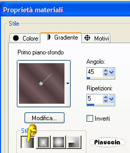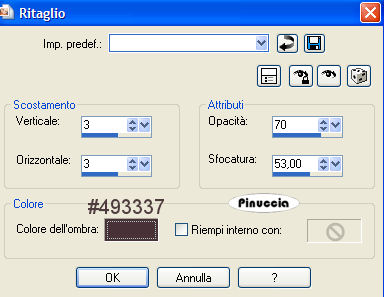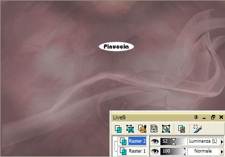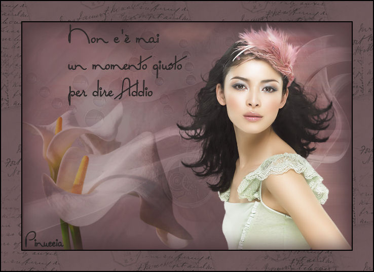 qui puoi trovare qualche risposta ai tuoi dubbi. Se l'argomento che ti interessa non è presente, ti prego di segnalarmelo. Questo tutorial è stato scritto in PSP 9, ma può essere eseguito con qualsiasi versione del programma. Occorrente: Materiale qui I tubes usati per questo tutorial sono di MarieL, Marif, Gerry e Jet. Il file di Sfondo è di Adriana. Se vuoi condividere i tubes, per favore rispetta il lavoro degli autori, e lascia intatto il livello del watermark. (in questa pagina trovi i links ai siti dei creatori di tubes) Imposta il colore di primo piano con #755d60, e il colore di sfondo con #4d3b3e. ![]() Apri il file di sfondo "There's never, Adriana Designs" Questa sarà la tua area di lavoro. Apri il tube MarieL_2006_Septembre_Smoke, e vai a Modifica>Copia. Torna al tuo lavoro e vai a Modifica>Incolla>Incolla come nuovo livello. Immagine>Capovolgi. Sposta il tube a destra (vedi il mio esempio).Cambia la modalità di miscelatura di questo livello in Luminanza (Esistente), e abbassa l'opacità al 52%. ![]() Apri il tube Marif_2006_octobre_decor078, e vai a Modifica>Copia. Torna al tuo lavoro e vai a Modifica>Incolla>Incolla come nuovo livello. Spostalo in alto a sinistra.Cambia la modalità di miscelatura di questo livello in Luce diffusa, e abbassa l'opacità al 20%. ![]() ![]() Apri il tube jet-woman09-juli-2007, e vai a Modifica>Copia. Torna al tuo lavoro e vai a Modifica>Incolla>Incolla come nuovo livello. Immagine>Ridimensiona, all'85%, tutti i livelli non selezionato: ![]() Spostalo a destra, un po' più in basso.Livelli>Duplica. Effetti>Effetti di distorsione>Vento: ![]() Cambia la modalità di miscelatura di questo livello in Sovrapponi, e abbassa l'opacità al 40%. Livelli>Disponi>Sposta giù. Attiva il livello superiore. ![]() ![]() Apri il tube Gerry-Bloemen10-2juli-2007, e vai a Modifica>Copia. Torna al tuo lavoro e vai a Modifica>Incolla>Incolla come nuovo livello. Immagine>Ridimensiona, all'80%, tutti i livelli non selezionato. Sposta il tube come preferisci.Cambia la modalità di miscelatura di questo livello in Luce diffusa. ![]() Livelli>Unisci>Unisci tutto. Passa il colore di primo piano a Gradiente di primo piano/sfondo, con i seguenti settaggi: ![]() Immagine>Aggiungi bordatura, 2 pixels, simmetriche, con il colore nero. Immagine>Aggiungi bordatura, 40 pixels, simmetriche, con il colore bianco. Seleziona il bordo con la bacchetta magica ![]() ![]() Riempi la selezione con il gradiente.Imposta il colore di primo piano con #202020. Attiva lo strumento Pennello ![]() cerca e seleziona il pennello Love letter, e applicalo a caso sul bordo. un consiglio: aggiungi sempre un nuovo livello raster prima di applicare un pennello, anche se il tutorial non lo indica espressamente. Così, se non dovessi essere soddisfatto del risultato, invece di ripetere Modifica>Annulla..., potrai eliminare il livello e ripetere l'operazione. Selezione>Nessuna selezione. Immagine>Aggiungi bordatura, 2 pixels, simmetriche, con il colore nero. Selezione>Seleziona tutto. Selezione>Modifica>Contrai, di 44 pixels. Effetti>Effetti 3D>Ritaglio: ![]() Ripeti l'Effetto Ritaglio, ma cambiando verticale e orizzontale a -3. Selezione>Nessuna selezione. Apri il tube di testo "There's never..." e vai a Modifica>Copia. Torna al tuo lavoro e vai a Modifica>Incolla>Incolla come nuovo livello. Posiziona il testo come preferisci.Aggiungi, se vuoi, il tuo nome su un nuovo livello. Livelli>Unisci>Unisci tutto. Salva in formato jpg. ![]() ![]() Se hai problemi o dubbi, o trovi un link non funzionante, o anche soltanto per dirmi che ti è piaciuto, scrivimi ![]() 14 Luglio 2007 |