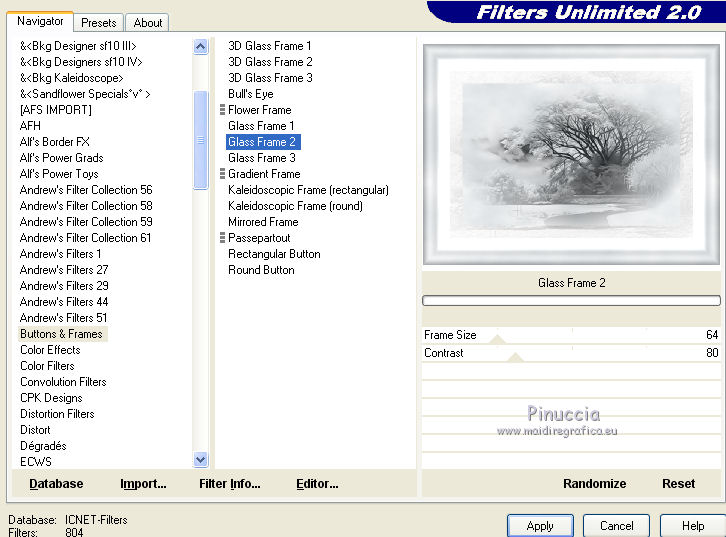 Effetti>Plugins>Filters Unlimited 2.0 - Buttons & Frames - Glass Frame 2.