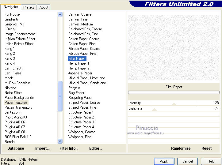 Effetti>Plugins>Filters Unlimited 2.0 - Paper Textures - Filter Paper.
