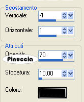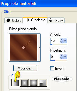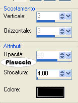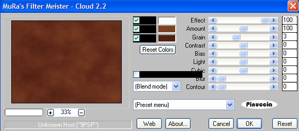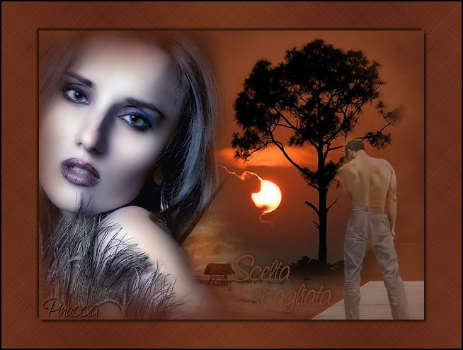 qui puoi trovare qualche risposta ai tuoi dubbi. Se l'argomento che ti interessa non è presente, ti prego di segnalarmelo. Questo tutorial è stato scritto in PSP 9, ma può essere eseguito con qualsiasi versione del programma. Occorrente: Materiale qui Per favore, se condividi i tubes, rispetta il lavoro degli autori e mantieni intatto il livello del watermark. Filtri: Mura's Meister qui Xero qui Funhouse qui Simple qui Apri una nuova immagine trasparente 640x480 pixels. Imposta il colore di primo piano con #7d4124, e il colore di sfondo con #511f14. Effetti>Plugins>Mura's Meister - Cloud, con i settaggi standard: ![]() Selezione>Seleziona tutto. Livelli>Nuovo livello raster. Apri il tube mc 1809 e vai a Modifica>Copia. Torna al tuo lavoro e vai a Modifica>Incolla>Incolla nella selezione. Abbassa l'opacità di questo livello al 50%. Selezione>Nessuna selezione. Apri il tube SS_385 e vai a Modifica>Copia. Torna al tuo lavoro e vai a Modifica>Incolla>Incolla come nuovo livello. Immagine>Rifletti. Spostalo a destra, un po' in alto.![]() Apri il tube jcw_afternoon_rain e vai a Modifica>Copia. Torna al tuo lavoro e vai a Modifica>Incolla>Incolla come nuovo livello. Immagine>Ridimensiona, al 90%, bicubica, tutti i livelli non selezionato. ![]() Spostalo a destra,in modo che l'ombrello non sia visibile. Abbassa l'opacità di questo livello al 60%. Regola>Correzione fotografica>Rimozione disturbo fotocamera digitale. (Se stai usando PSP X: Regola>Rimozione disturbo fotocamera digitale) Attiva il livello Raster 3 (il bosco). Attiva lo strumento Gomma , dimensione 20, durezza 5, opacità 10,e cancella le tracce del bosco dalle spalle e dalla testa dell'uomo. ![]() Attiva il livello superiore. Apri il tube mc 1435 e vai a Modifica>Copia. Torna al tuo lavoro e vai a Modifica>Incolla>Incolla come nuovo livello. Spostalo a sinistra.Attiva il livello raster 2 (le palme). Con la gomma cancella dal viso i segni degli alberi.![]() Attiva il livello superiore (la donna). Effetti>Plugins>Xero - Porcelain, con i settaggi standard. ![]() Livelli>Unisci>Unisci tutto. Immagine>Ridimensiona, all'85%, bicubica, tutti i livelli selezionato. ![]() Metti da parte per il momento questa immagine. Apri una nuova immagine trasparente 650 x 490 pixels. Passa il colore di primo piano a Gradiente di primo piano/sfondo, lineare, con i seguenti settaggi: ![]() Riempi l'immagine con questo gradiente.Regola>Sfocatura>Sfocatura gaussiana, raggio 40. ![]() Effetti>Plugins>Funhouse - Xaggerate, con i settaggi standard. ![]() Effetti>Plugins>Simple - 4 way average. Effetti>Effetti di bordo>Aumenta. Attiva l'immagine che hai messo da parte prima e vai a Modifica>Copia. Ritorna all'immagine di sfondo e vai a Modifica>Incolla>Incolla come nuovo livello. Effetti>Effetti 3D>Sfalsa ombra, con i seguenti settaggi, colore nero. ![]() Ripeti l'Effetto Sfalsa ombra, cambiando verticale e orizzontale a -3. Immagine>Aggiungi bordatura, 2 pixels, simmetriche, con il colore nero. Attiva lo strumento Testo , mobile.Passa il colore di primo piano (#7d4124) a colore di sfondo e chiudi il colore di primo piano. Scegli un font (io ho scelto Saginaw, dimensione 24), e scrivi "Wrong choice", oppure, in italiano "Scelta sbagliata". Se stai usando PSP X, dovrai regolare la dimensione. I settaggi in pixels della versione X non corrispondono alle precedenti versioni di PSP. In fondo a questa pagina troverai un confronto tra le due versioni. Livelli>Innalza selezione a livello. Selezione>Nessuna selezione. Livelli>Duplica. Livelli>Unisci>Unisci giù. Effetti>Effetti 3D>Sfalsa ombra, con i seguenti settaggi, colore nero: ![]() Aggiungi il tuo nome in un nuovo livello. Livelli>Unisci>Unisci tutto, e salva il tuo lavoro. ![]() ![]() Se hai problemi o dubbi, o trovi un link non funzionante, o anche soltanto per dirmi che ti è piaciuto, scrivimi 8 Febbraio 2007 |