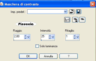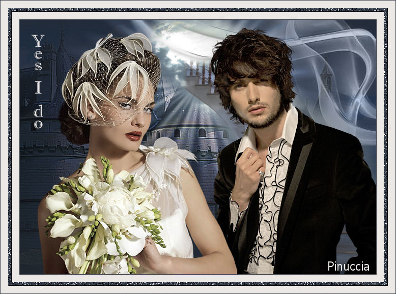 qui puoi trovare qualche risposta ai tuoi dubbi. Se l'argomento che ti interessa non è presente, ti prego di segnalarmelo. Questo tutorial è stato scritto in PSP 9, ma può essere eseguito con qualsiasi versione del programma. Occorrente: Materiale qui I tubes usati per questo tutorial sono di Jet, Brigitte, Angie,Mariel e Marcio Se vuoi condividere i tubes, per favore rispetta il lavoro degli autori, e lascia intatto il livello del watermark. (in questa pagina trovi i links ai siti dei creatori di tubes) Filtri: VM Natural qui FM Tile Tools qui Apri una nuova immagine trasparente 700 x 500 pixels. Imposta il colore di primo piano con #363d48, e il colore di sfondo con #ebe8e5. Riempi l'immagine con il colore di primo piano.Livelli>Duplica. Effetti>Plugins>VM Natural - Starmaker: ![]() Cambia la modalità di miscelatura di questo livello in Luce netta, e abbassa l'opacità al 56%. Apri il tube mc681, e vai a Modifica>Copia. Torna al tuo lavoro e vai a Modifica>Incolla>Incolla come nuovo livello. Immagine>Rifletti. Immagine>Ridimensiona, al 125%, tutti i livelli non selezionato. ![]() Effetti>Plugins>FM Tile Tools - Blend Emboss, con i settaggi standard. ![]() Sposta il tube a sinistra,(vedi il mio esempio). Cambia la modalità di miscelatura di questo livello in Sovrapponi, e abbassa l'opacità al 70%. Apri il tube Div-Mai 2008-02, e vai a Modifica>Copia. Torna al tuo lavoro e vai a Modifica>Incolla>Incolla come nuovo livello. Sposta il tube a destra e un po' in alto.Apri il tube MarieL, e vai a Modifica>Copia. Torna al tuo lavoro e vai a Modifica>Incolla>Incolla come nuovo livello. Sposta il tube in alto a destra.Cambia la modalità di miscelatura di questo livello in Luminanza (Esistente). ![]() Apri il tube Mtm-Mannen 176, e vai a Modifica>Copia. Torna al tuo lavoro e vai a Modifica>Incolla>Incolla come nuovo livello. Regola>Messa a fuoco>Maschera di contrasto. ![]() Sposta il tube a destra contro il bordo.Apri il tube jet-woman-24jan 2008, e vai a Modifica>Copia. Torna al tuo lavoro e vai a Modifica>Incolla>Incolla come nuovo livello. Immagine>Ridimensiona, all'85%, tutti i livelli non selezionato. Regola>Messa a fuoco>Maschera di contrasto: ![]() Sposta il tube a sinistra e in basso contro il bordo.![]() Immagine>Aggiungi bordatura, 1 pixel, simmetriche, con il colore #363d48. Immagine>Aggiungi bordatura, 15 pixels, simmetriche, con il colore bianco. Seleziona questo bordo con la bacchetta magica ![]() ![]() Riempi la selezione con il colore di sfondo.Selezione>Nessuna selezione. Immagine>Aggiungi bordatura, 7 pixels, simmetriche, con il colore bianco. Seleziona il bordo con la bacchetta magica ![]() e riempilo con il colore di primo piano.Regola>Aggiungi/Rimuovi disturbo>Aggiungi disturbo: ![]() Regola>Messa a fuoco>Metti a fuoco. Effetti>Effetti 3D>Smusso a rilievo. ![]() Selezione>Nessuna selezione. Immagine>Aggiungi bordatura, 15 pixels, simmetriche, con il colore bianco. Seleziona questo bordo con la bacchetta magica ![]() e riempilo con il colore di sfondo.Selezione>Nessuna selezione. Immagine>Aggiungi bordatura, 1 pixel, simmetriche, con il colore #363d48. Apri il file con il testo: Yes I do, e vai a Modifica>Copia. Torna al tuo lavoro e vai a Modifica>Incolla>Incolla come nuovo livello. Sposta il testo come preferisci, o come nel mio esempio.Aggiungi il tuo nome e/o il tuo watermark. Livelli>Unisci>Unisci tutto e salva in formato jpg. ![]() Se hai problemi o dubbi, o trovi un link non funzionante, o anche soltanto per dirmi che ti è piaciuto, scrivimi