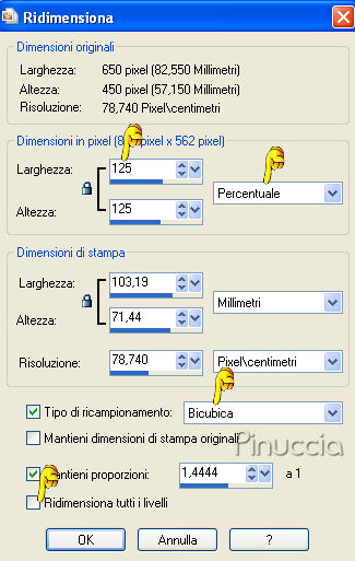 Immagine>Ridimensiona, al 125%, ricampionamento bicubica, tutti i livelli non selezionato: