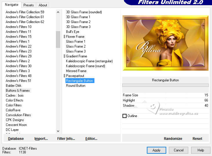 32- Effects>Plugins>Filters Unlimited 2.0 - Buttons & Frames - Rectangular Button.