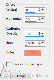 Effects>3D Effects>Drop Shadow, foreground color #fe8470, or at your choice.