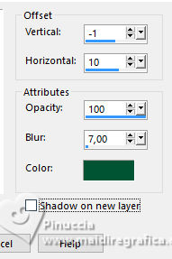 Effects>3D Effects>Drop Shadow, foreground color #035434.