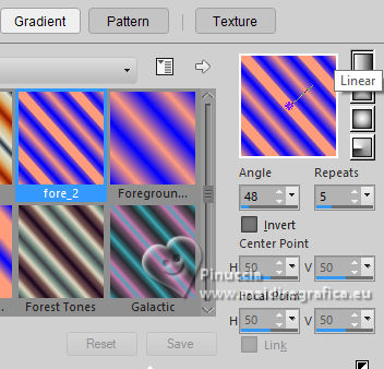 2. Set your foreground color to Gradiente and set the Gradient fore_2, style Linear.