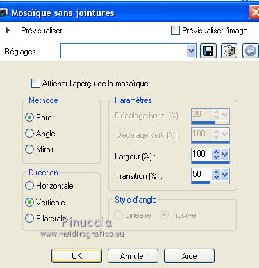 7. Répéter Effets>Effets d'image>Mosaïque sans jointures, mais Verticale coché.