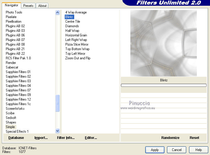 Effets>Modules Externes>Filters Unlimited 2.0 - Simple - Blintz.