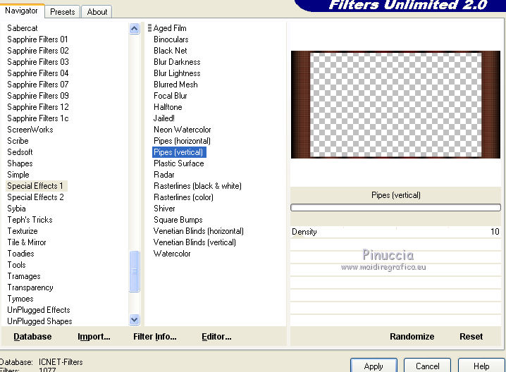 25. Effets>Modules Externes>Filters Unlimited 2.0 - Special Effects 1 - Pipes (Vertical).