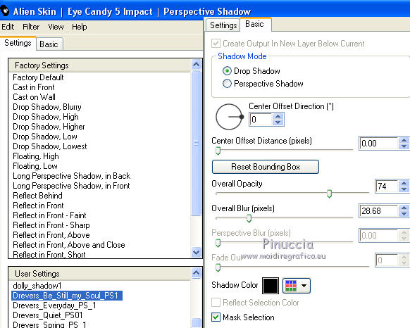 Effets>Modules Externes>Eye Candy 5 Impact - Perspective Shadow.