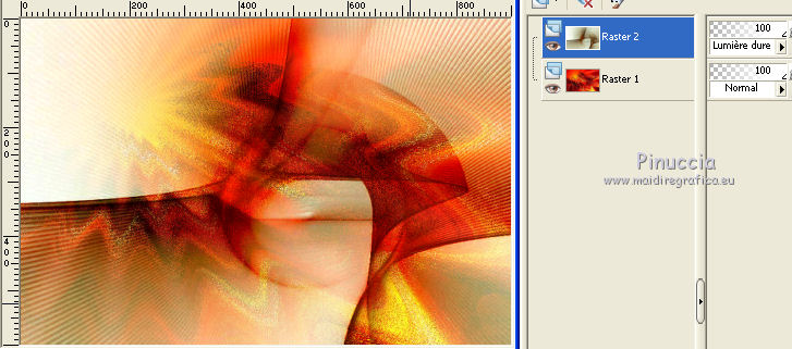 Placer le calque en mode Lumière dure et réduire l'opacité à 60%.