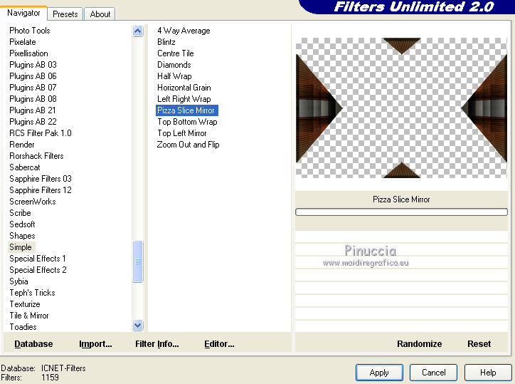 8. Effets>Modules Externes>Filters Unlimited 2.0 - Simple – Pizza Slice Mirror.