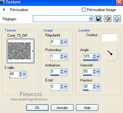 23. Effets>Effets de textures>Texture, sélectionner le preset Vieux ciment ou Corel_15_041.