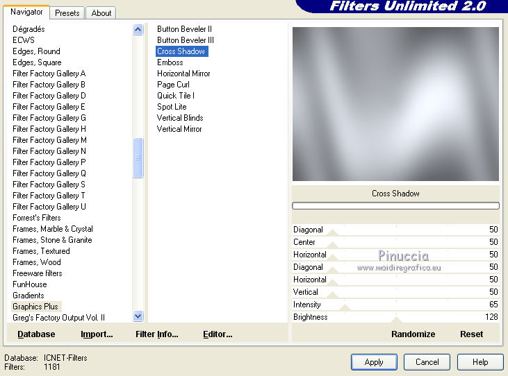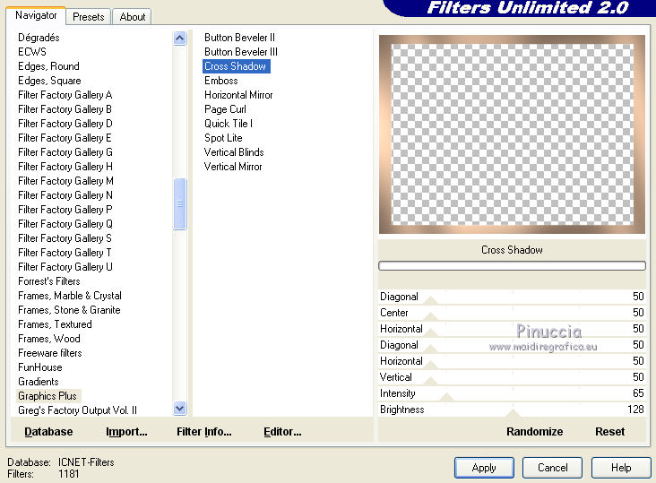 32. Effets>Modules Externes>Filters Unlimited 2.0 - Graphics Plus – Cross Shadow.