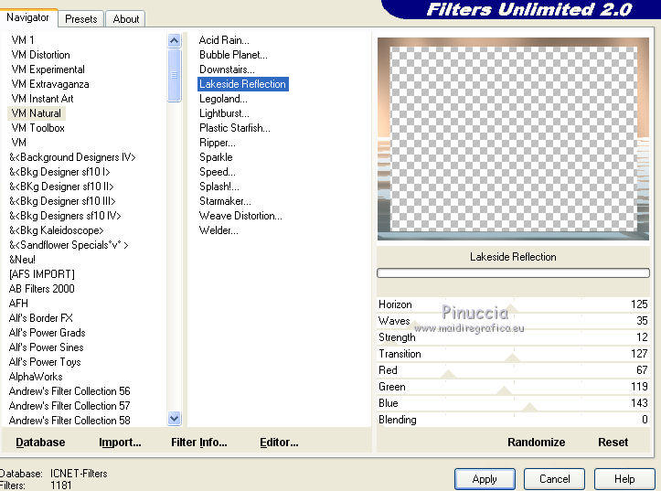 33. Effets>Modules Externes>Filters Unlimited 2.0 - VM Natural – Lakeside Reflection.