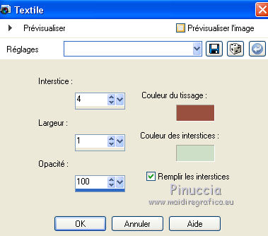 couleur du tissage: #9a5040 - couleur des interstices #cddfc7.